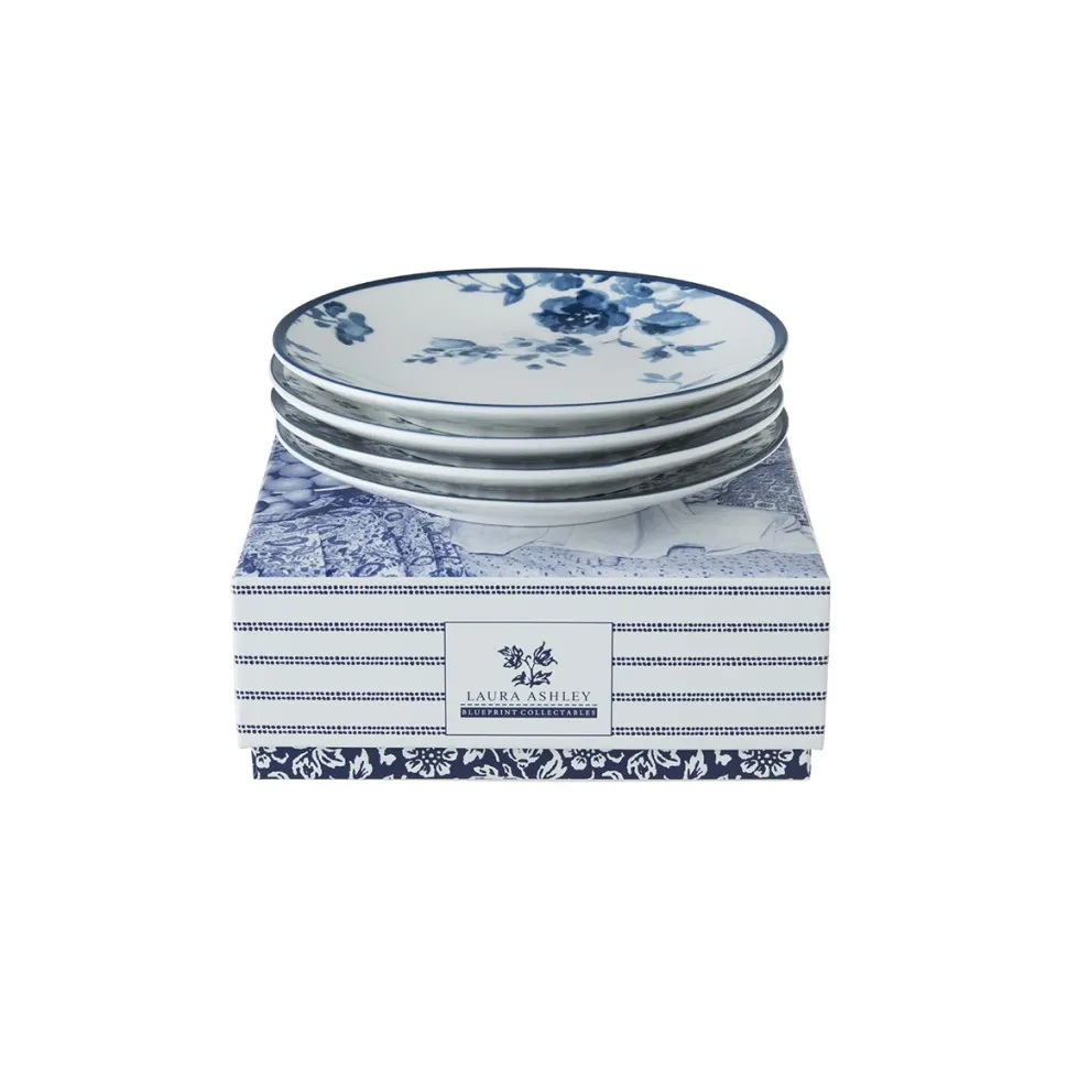 Gebakborden-set (4 stuks) in geglazuurd porselein uit de collectie Blue Divers van Laura Ashley.