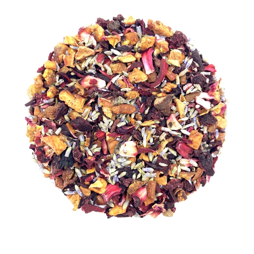 Ingrediënten: hibiscus, appel, peer, lavendel, kaneel, rozenblaadjes, rode biet, natuurlijke aroma’s