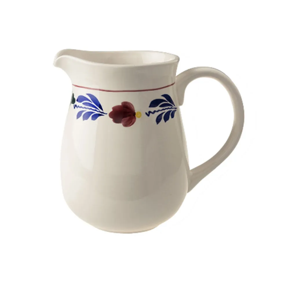 Deze kan van Boerenbont mag niet ontbreken op tafel. De grote schenkkan maakt deel uit van de Boerenbont collectie van Royal Boch. Royal Boch ontwerpt, produceert en verkoopt luxe serviesgoed sinds 1841. Van generatie op generatie is Boerenbont hét servies op tafel bij vele gezinnen. De Boerenbont collectie kenmerkt zich door het herkenbare bloemendecor in de kleuren blauw, groen, rood en geel. De kan heeft een inhoud van 2,5L en is daarmee groot genoeg om een heel gezin te voorzien van een glas water of andere drank naar keuze.