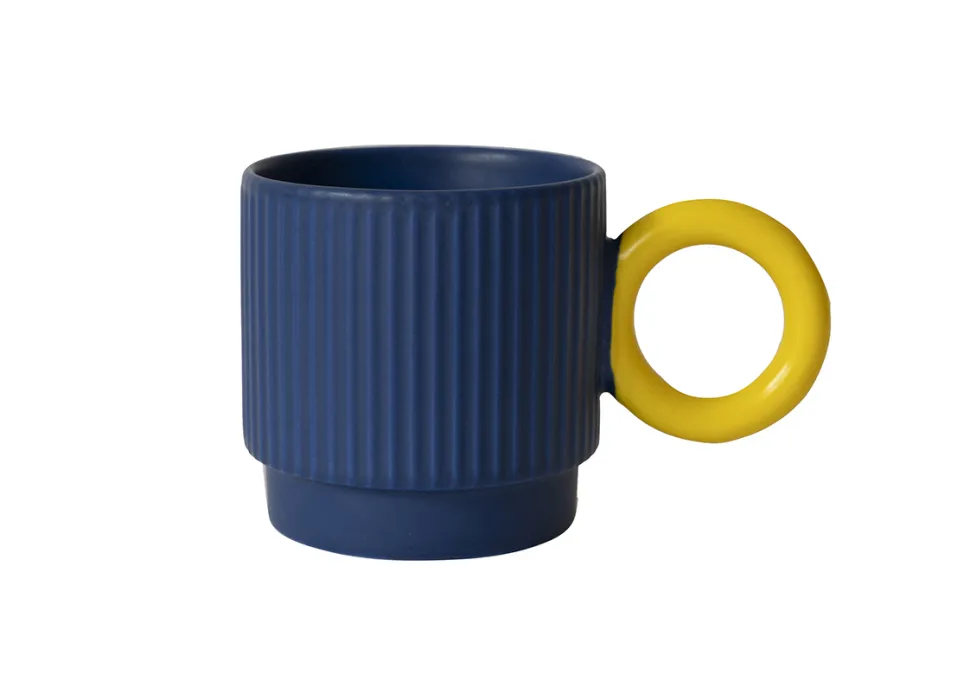 Geef je dagelijkse routine een vrolijke twist met de roze Luka mok van Table of Joy. Deze porseleinen mok heeft een fel blauwe kleur en een opvallend geel oor. Door het stapelbare ontwerp past hij gemakkelijk in je kast. Een vrolijke toevoeging aan elke dag!