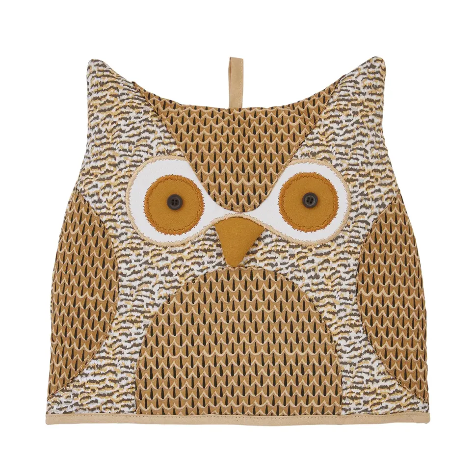 Deze theemuts in de vorm van een uil,met geborduurde en patchwork opgestikte stoffen, is liefdevol vervaardigd in een reeks van op maat gemaakte UlsterWeavers ontwerpen en wikkelen zich rond je theepot zodat je thee langer warm blijft.